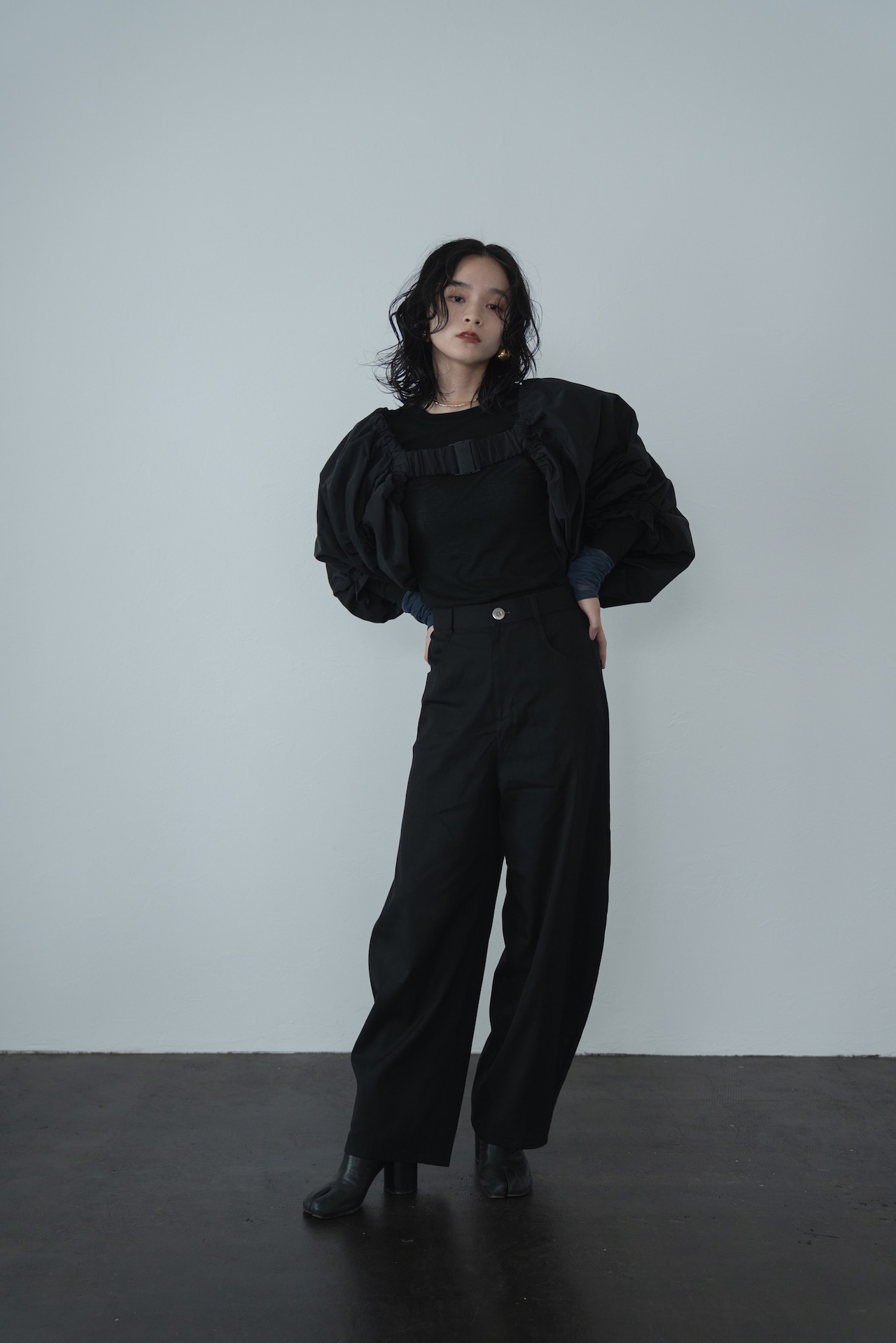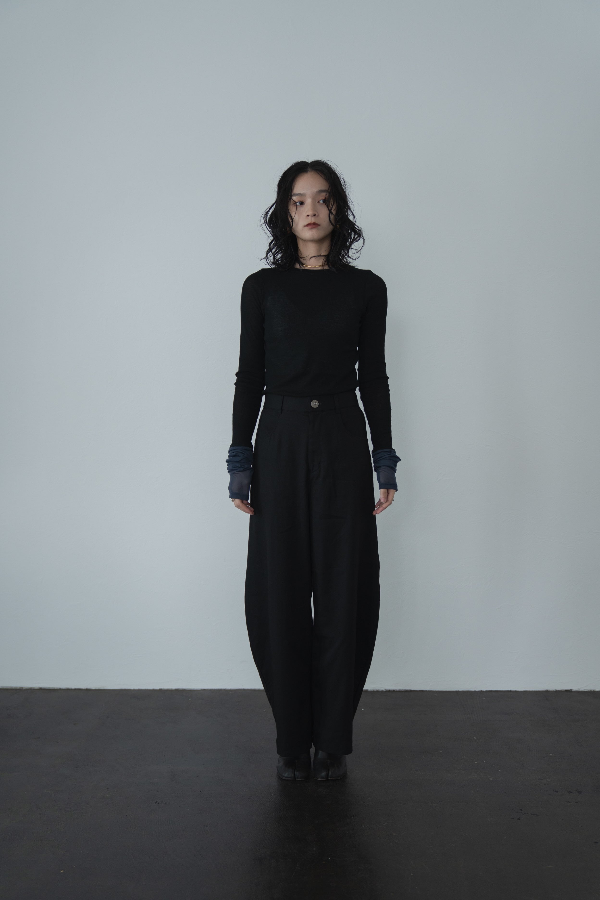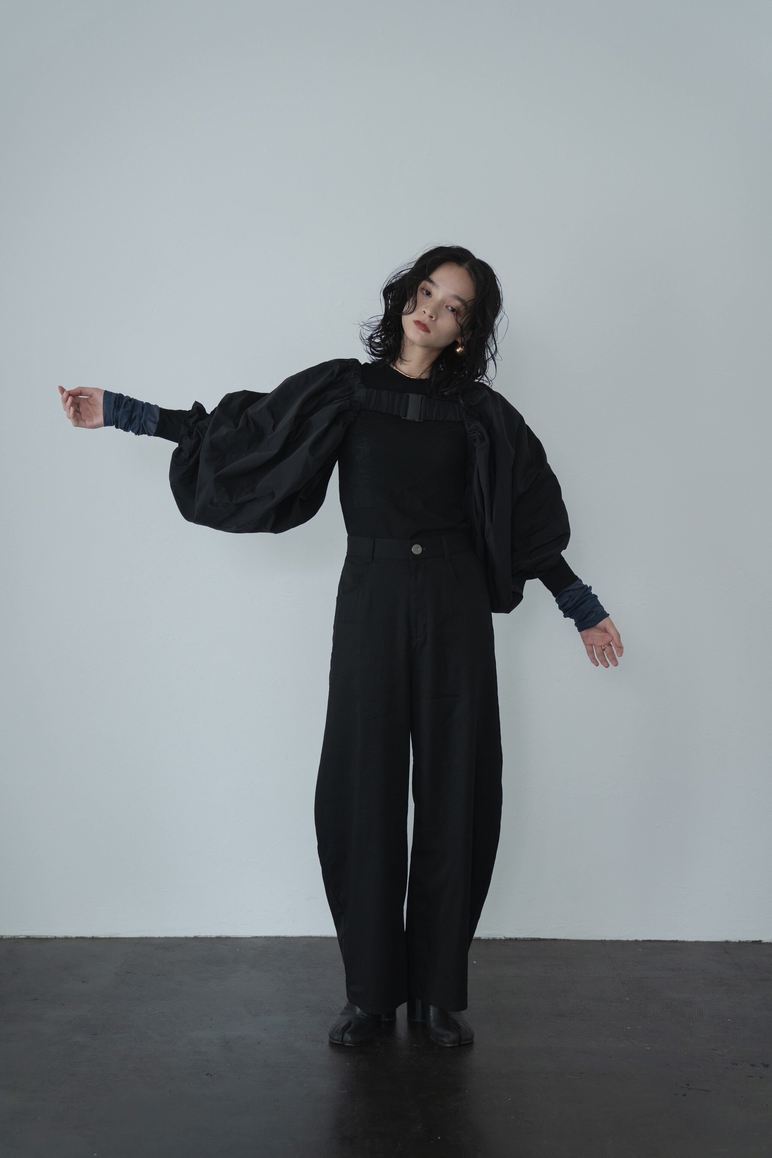 袖の透け感が女性らしさを演出し、リブデザインがトレンド感をプラスします。